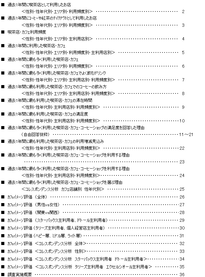 【カフェ・喫茶店調査白書2015年度板(PDF版)36頁構成】