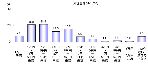 ●掃除機を購入した(もらいものを除く)人に、購入価格を質問した。 「1万円〜1万5千円未満」が19%と最も多い。平均購入価格は21,721円。3万円以上の購入者は15%であった。 |