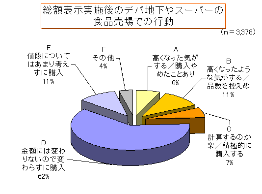 総額表示実施後のデパ地下やスーパーの食品売場での行動 【選択式 単数回答】 |