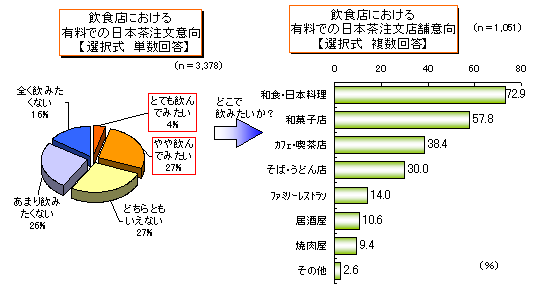 飲食店における、有料での日本茶注文意向・注文したい場所 |