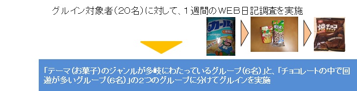 1)プレ調査としてWEB日記調査を実施し、グルイン対象者を絞り込む ⇒ グルインの精度UP